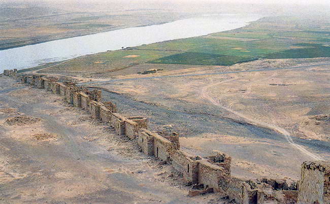 Euphrate![]() Ruines bysantines de Halabiye sur la rive droite de l'Euphrate en Syrie - Photo J. Galloux, in Syrie, mémoire de l'Orient. Halabiye (ou Zenobia) a été fortifiée au IIIe siècle de notre ère par Zénobie (240-275), reine de Palmyre (267-273). Après la révolte d'indépendance de Zénobie contre l'Empire romain en 273, l'empereur Aurélien (214-275, règne 270-275) s'empare du site qui sera fortifié sous Dioclétien (244-312, règne 284-305) dans le cadre du 'Limes Arabicus' (1500 km de protection du nord de la Syrie au Sud de la Palestine et au nord de l'Arabie). Image suivante : le site de Zalabiye sur la rive opposée. ![]() ![]() L'Euphrate presque asséché par la fermeture des vannes du barrage irakien de Falloujah - Image Internet |