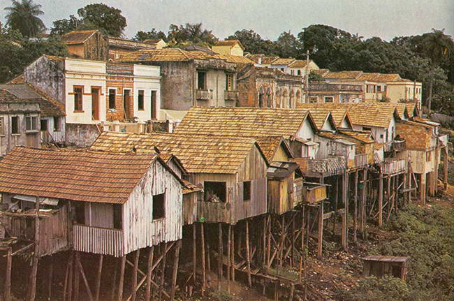 ![]() Photo Selection du Reader's Digest Les cahutes de Manaus, sur le rio Negro, sont construites sur pilotis ou installées sur des radeaux, car le fleuve est sujet à des crues aussi importantes que subites. La jungle enserre la ville. |