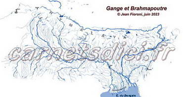 | Carte inédite du Gange et du Brahmapoutre par Jean Fioroni - Original : A2 La carte n'est pas à l'échelle, les surfaces, les tracés et les positionnements sont approximatifs Pas de zoom pour le moment