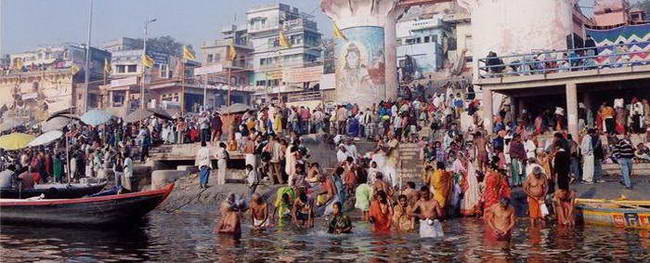 | Le Gange à Bénarès (1ère ville sacrée) 84 Ghats - 1500 temples "La ville n'est qu'un fouilli extravagant, inextricable de ruelles enchevêtrées, où se dressent, au hasard, en désordre, des milliers de temples. toutes les formes, tous les styles cohabitent ici. Minarets, dômes et bulbes érigés, pressés l'un sur l'autre, dominent de très haut la rive sacrée du Gange. La rive gauche." Joseph Kessel ![]() Photo Internet |